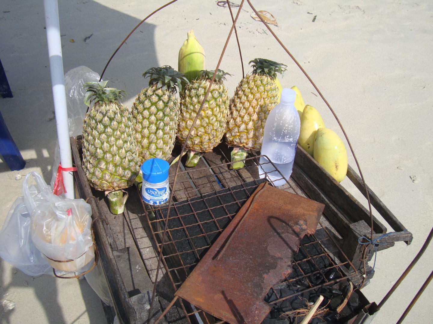 Frisches Obst und gegrillter Mais