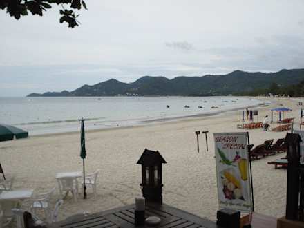 Diese Aussicht auf den Strand und die 3 km lange Bucht von Chaweng kann man von der Terrasse des Hotel-Restaurants geniessen.