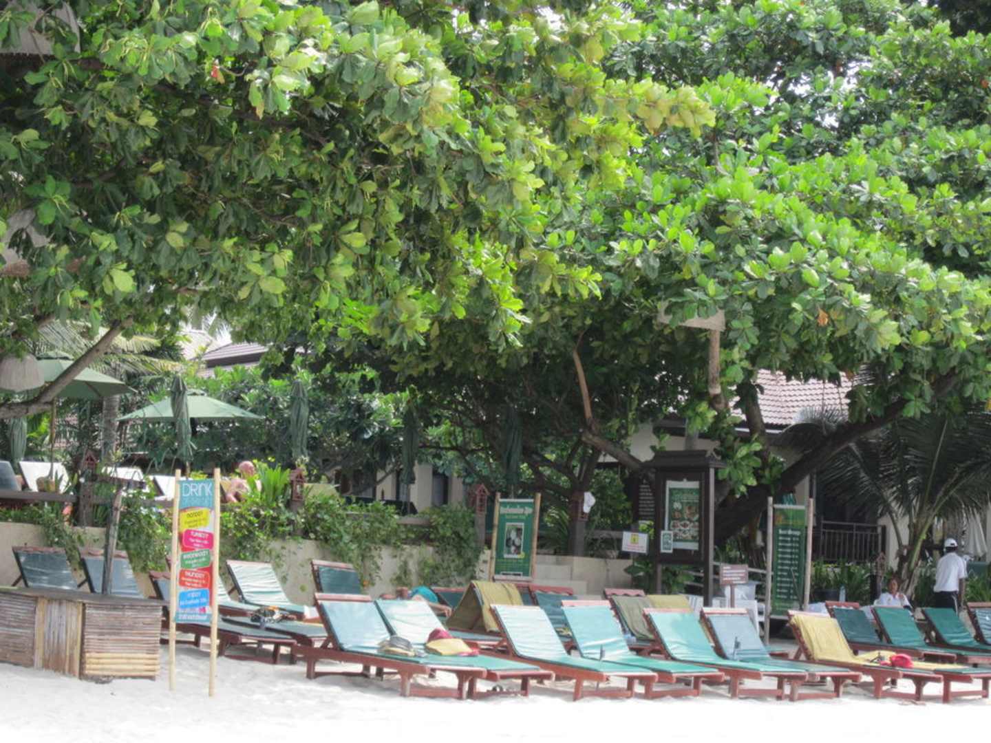 alle Liege sind schon früh morgen sauber vorbereitet, der Schirm kommt dazu erst an Anfrage.