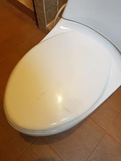 Toilettendeckel abgenutzt mit Kratzern und Flecken
