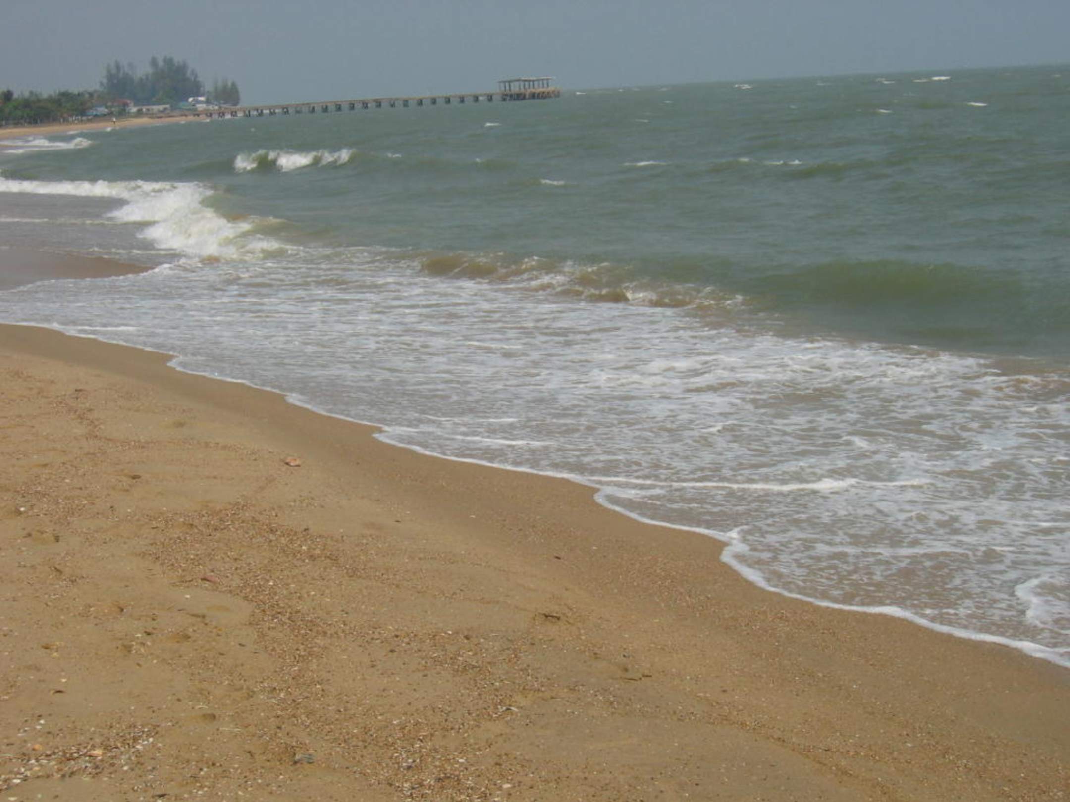 Strand am Bacchus Home Resort nur durch die kleine Straße vom Hotelbereich getrennt. Einzigstes Hotel mit Liegen am Strand in Pran Buri!!!!