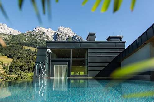 Pool mit Ausblick auf die Leoganger Steinberge