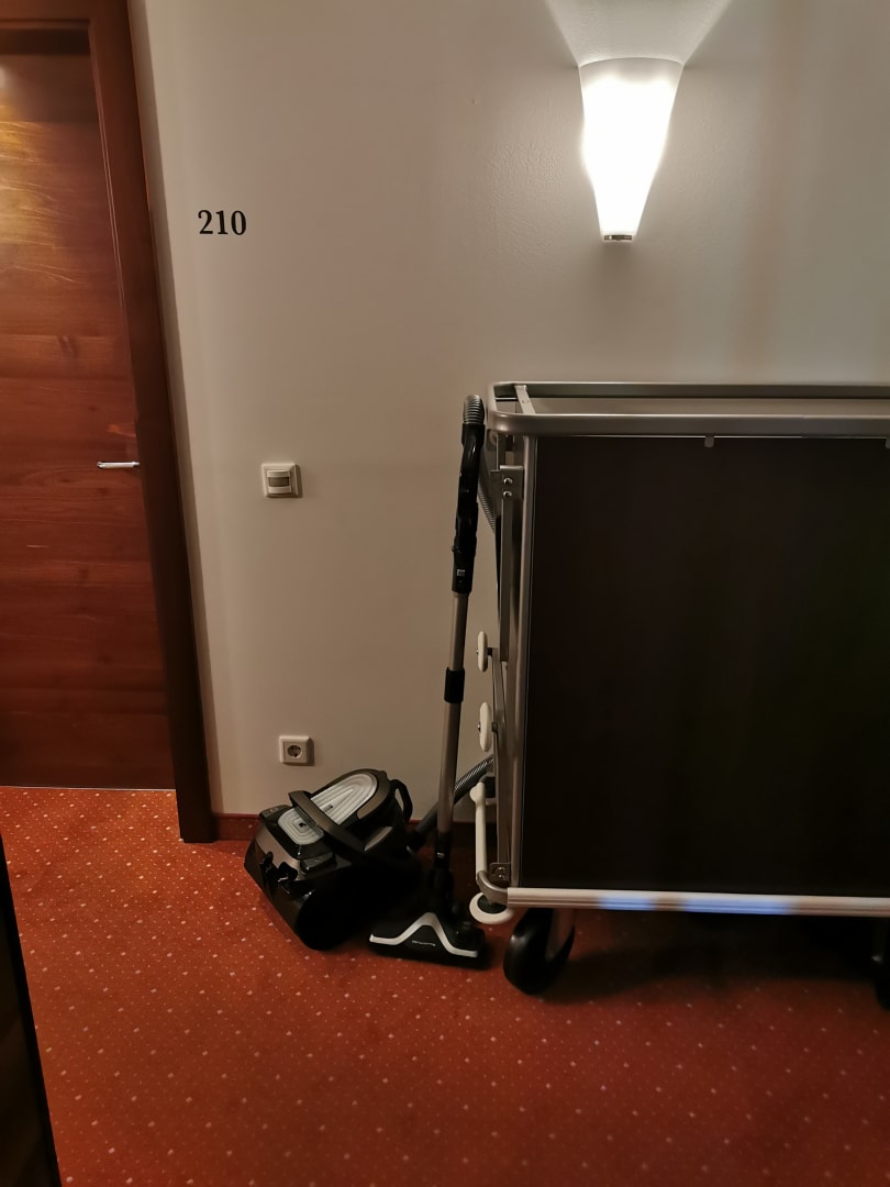 Staubsauger stand während des kompletten Aufenthaltes vor unserer Zimmertüre