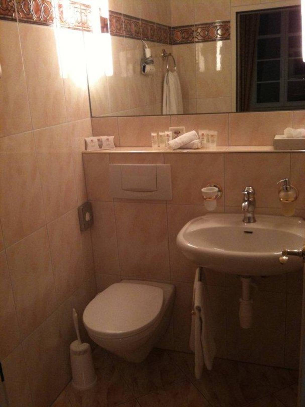 Für ein Doppelzimmer zu kleines Badezimmer mit winziger Dusche