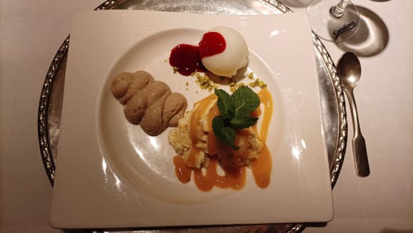Zitronen Sorbet, Walnuss Mousse und Pfirsich Tiramisu