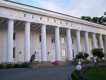 Das Badehaus Goor von der ParkplatzseiteDas Badehaus Goor von außen von der Parkplatzseite her