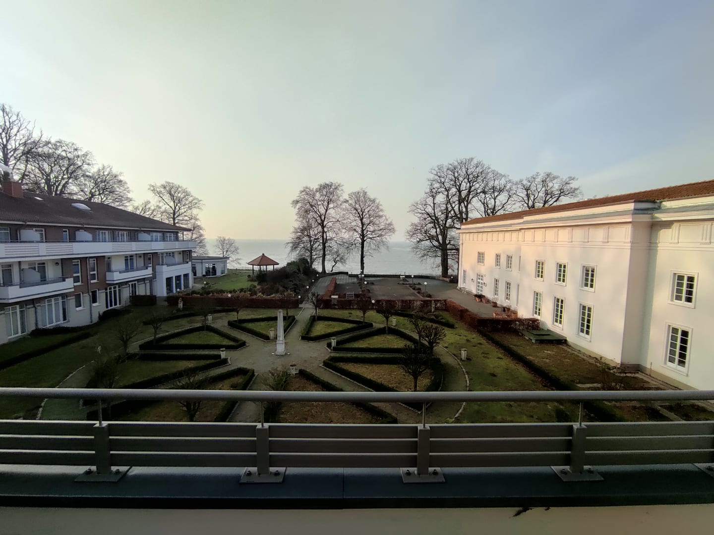 Blick über den Innenhof auf den Bodden.