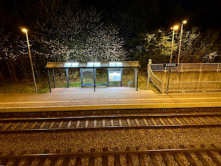 Ausblick von den Zimmern in der 1. Etage auf den Bahnsteig vom Bahnhof Bretzfeld
