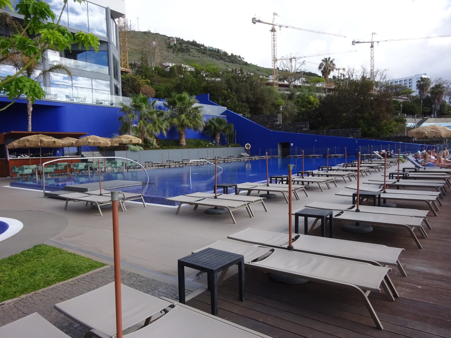 Pool mit Baustelle im Hintergrund