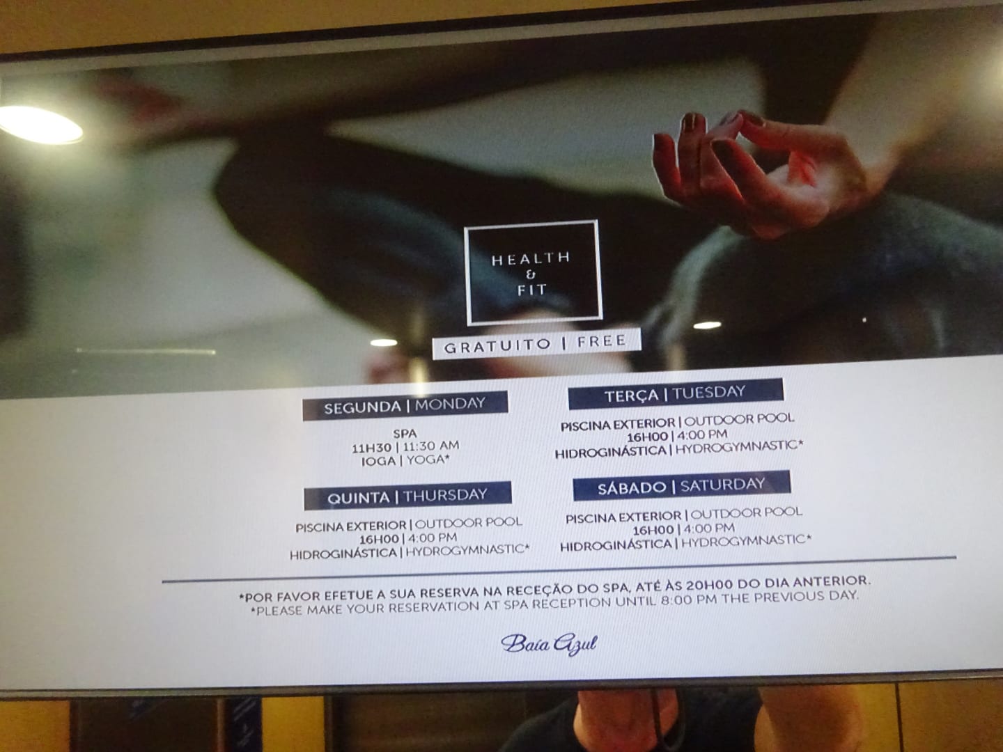 Hinweis auf Aktivitäten wie Aqua-Gym oder Massagen