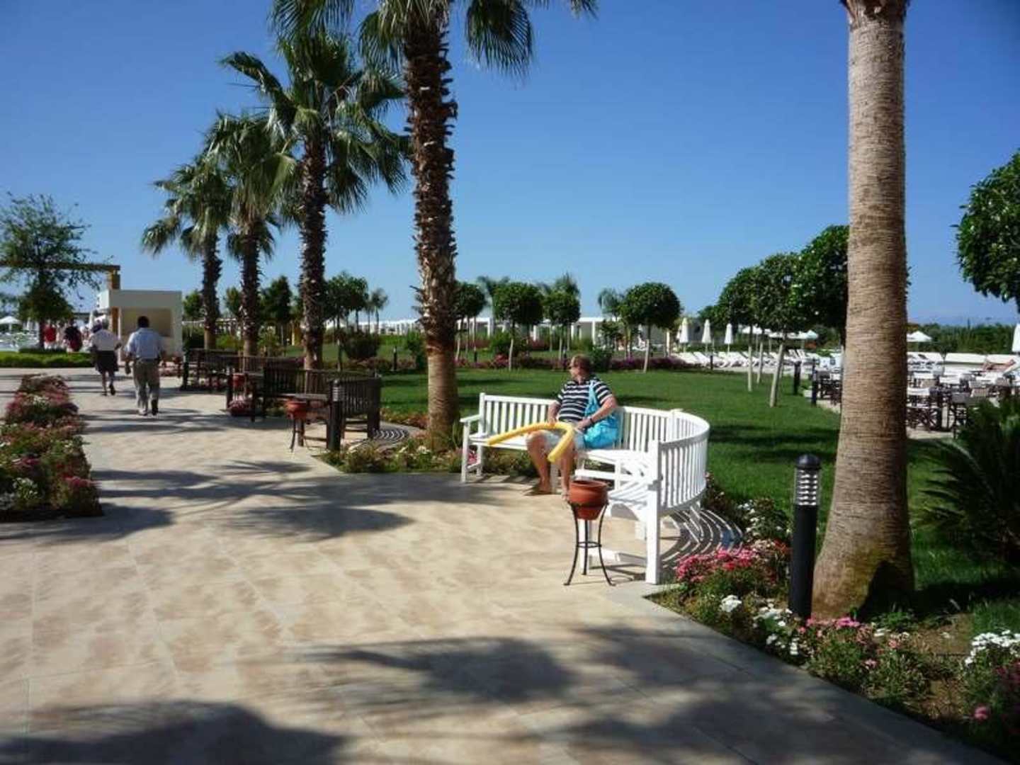 Sitzgelegenheiten vor dem Ausgang zum Poolbereich