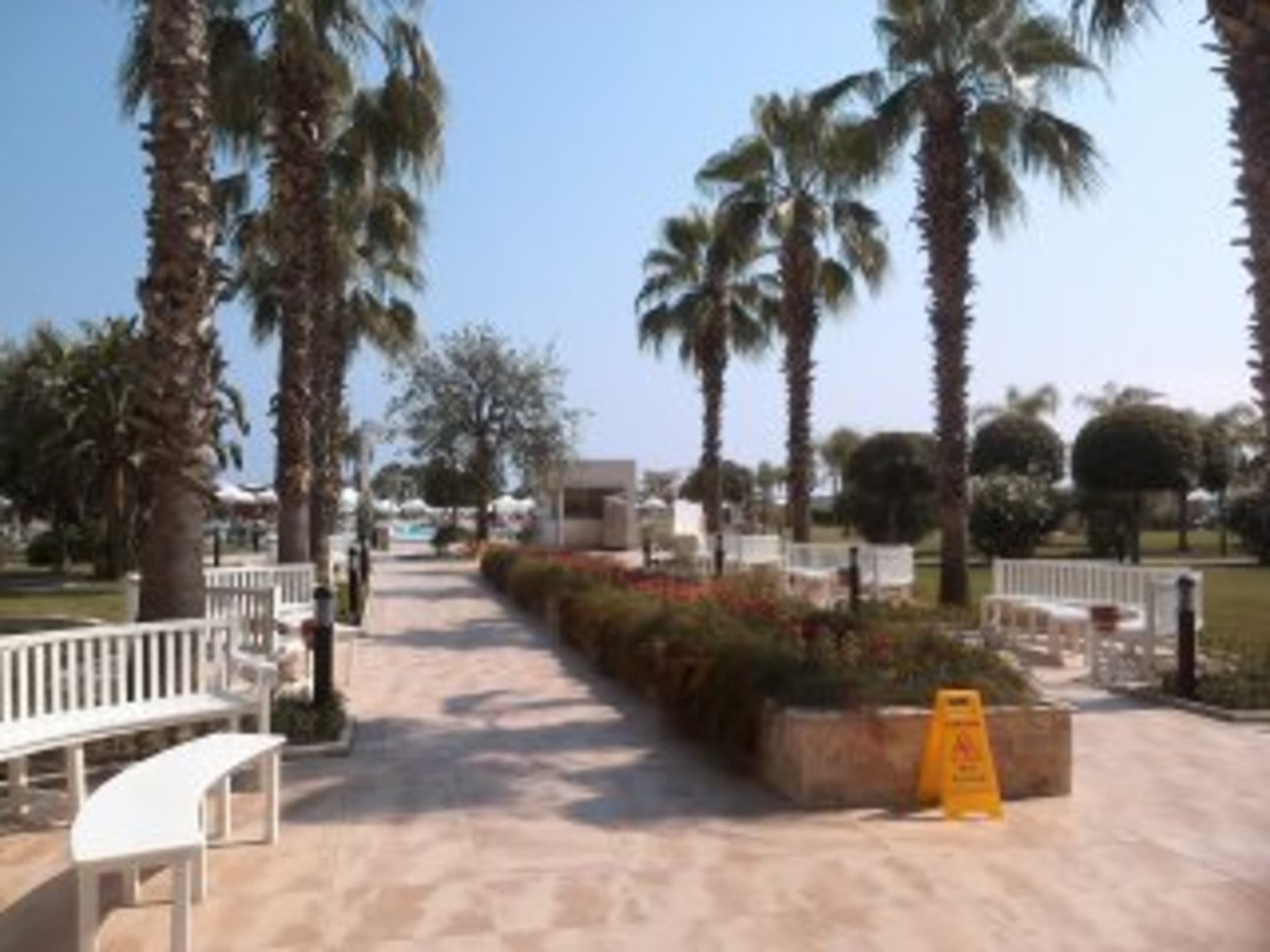 Weg zum Pool und Strandhandtuchausgabe