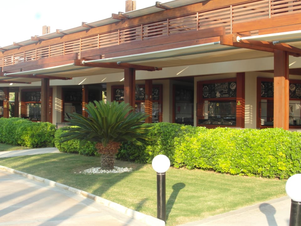 viele kleine Speisenstände am großen Pool