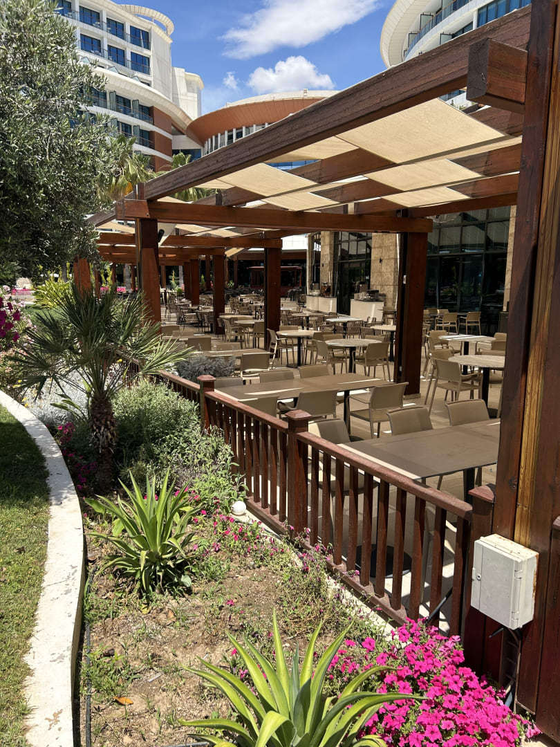 Frühstücks-Mittags-Abendessen Terasse super Überdacht falls zu heiß innen klimatisiert