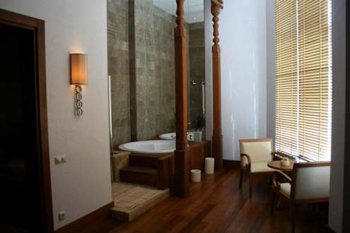 Familienmassagebereich mit Wanne und Dusche