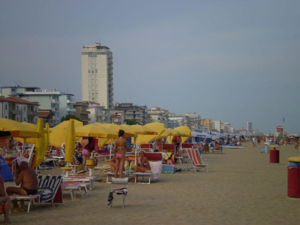 Strand Lido di JesoloGanz hinten ist das Hotel Bali zu erkennen - dort ist wohl auch der ruhigste Strandabschnitt..