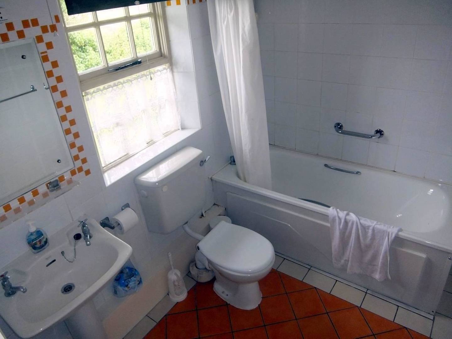 Das Bad mit Wanne und Toilette