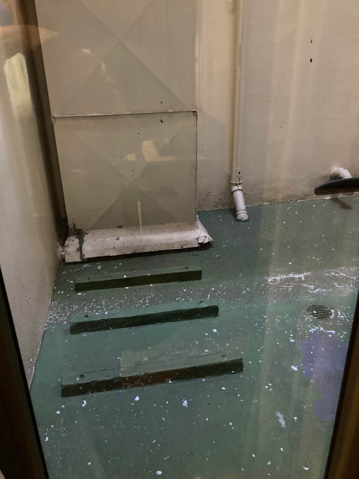 Der Ausblick und keine Möglichkeit, ein Fenster zu öffnen mit defekter Klimaanlage