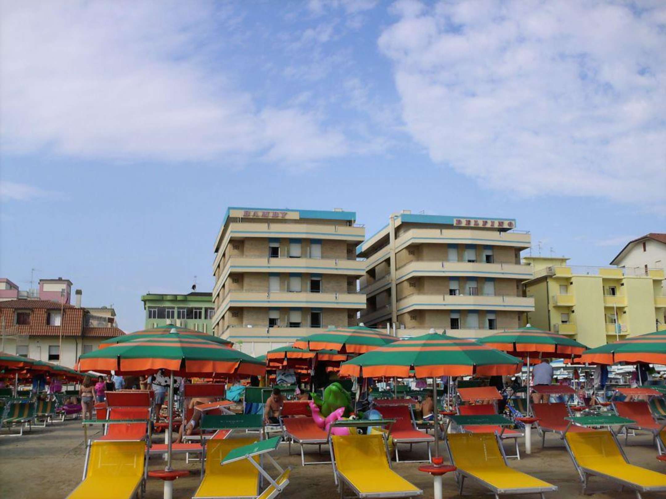 Ansicht vom Meer aus aufs Hotel Bambi in Gatteo Mare in Italien (Adria)