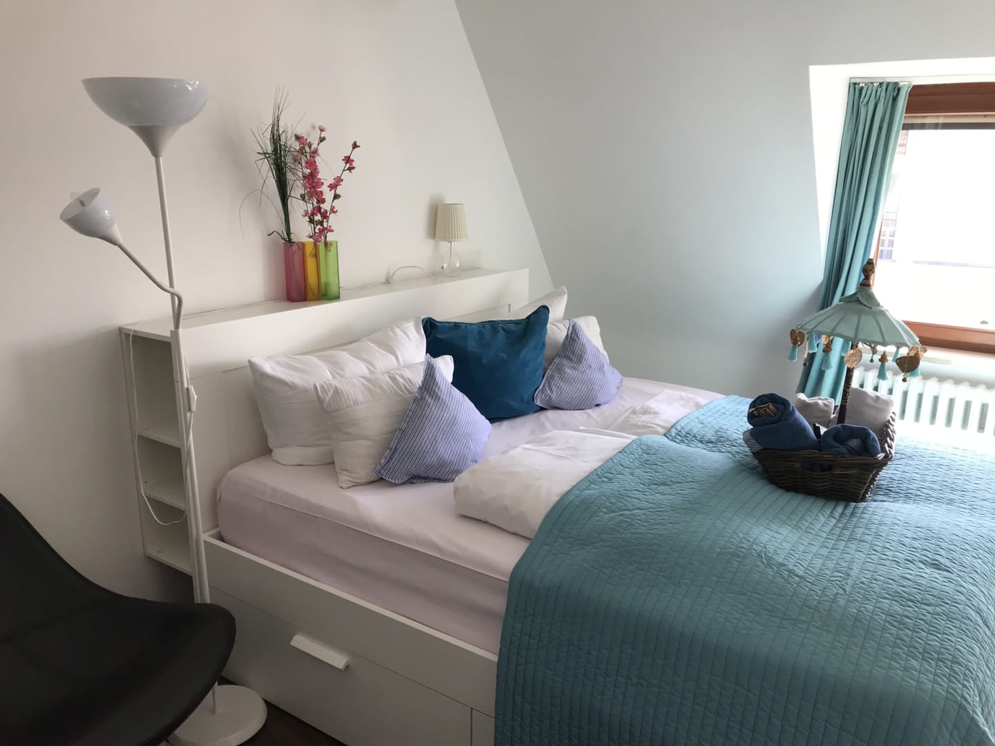 DZ, das Körbchen mit Handtüchern, etwas Süßem und Toilettenpapier.
