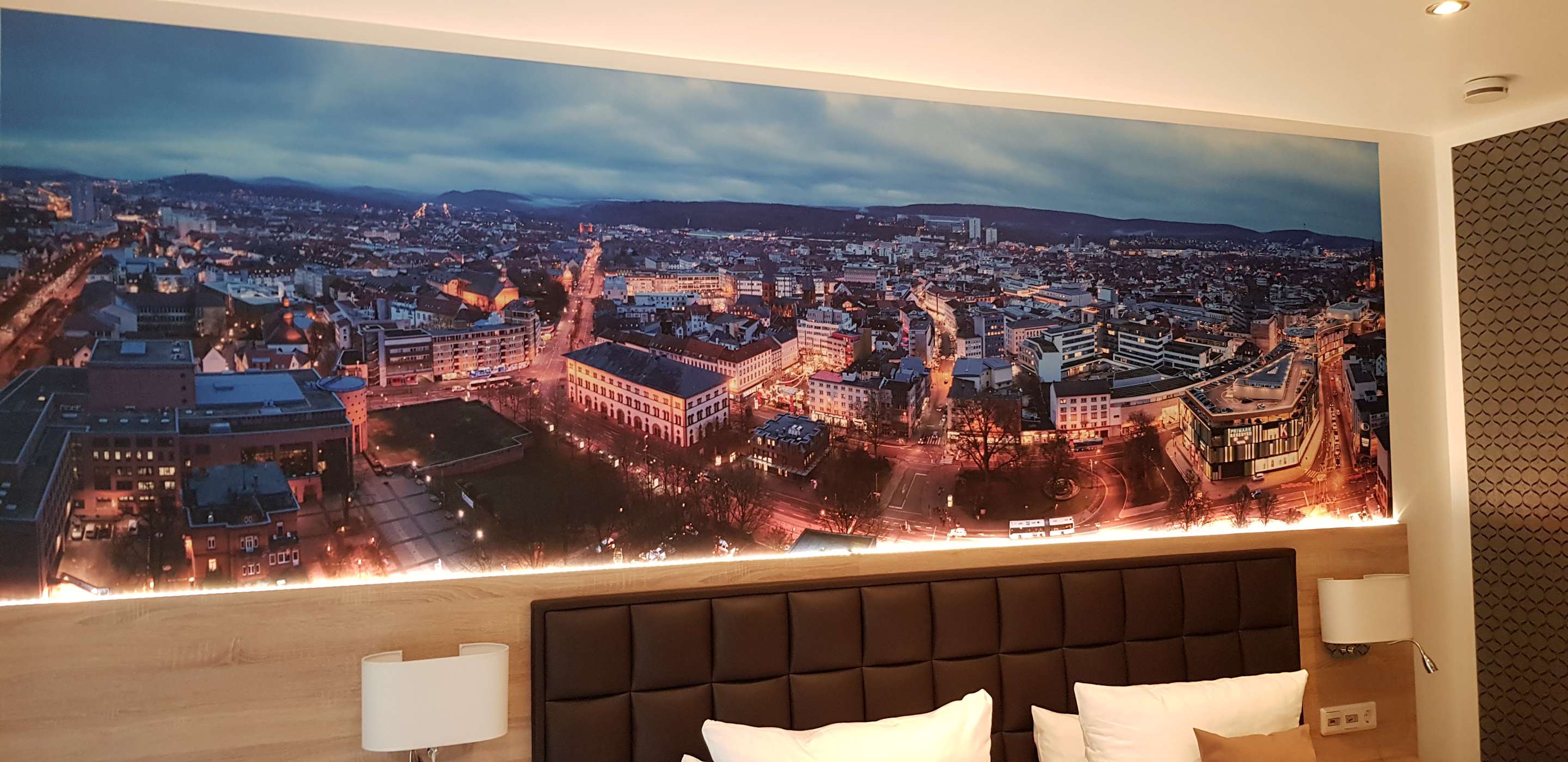Panoramabild der Stadt Kaiserslautern im Zimmer.