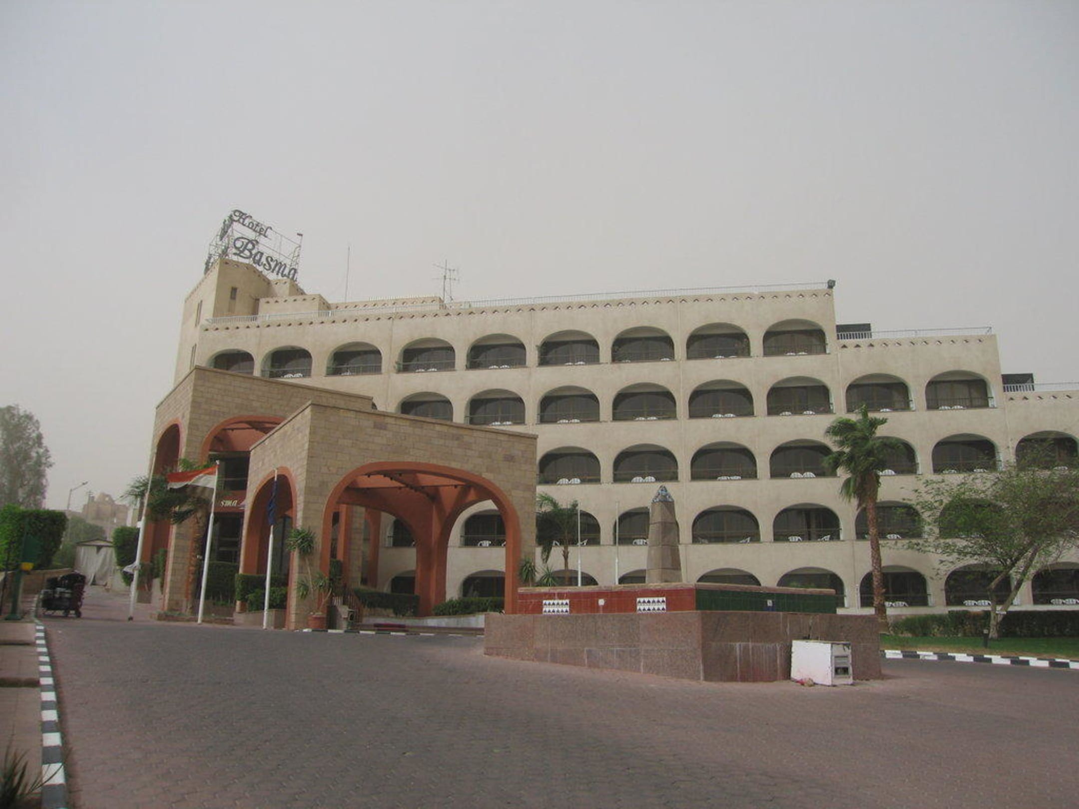 EingangsbereichHotel Basma von vorne. Allerdings gab es an diesem Tag einen starken Sandsturm.