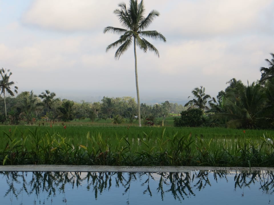 Blick vom Pool aus auf die Reisterrassen.