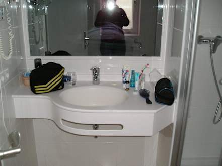 Großer Spiegel mit Waschbereich und viel Platz zum Abstellen...