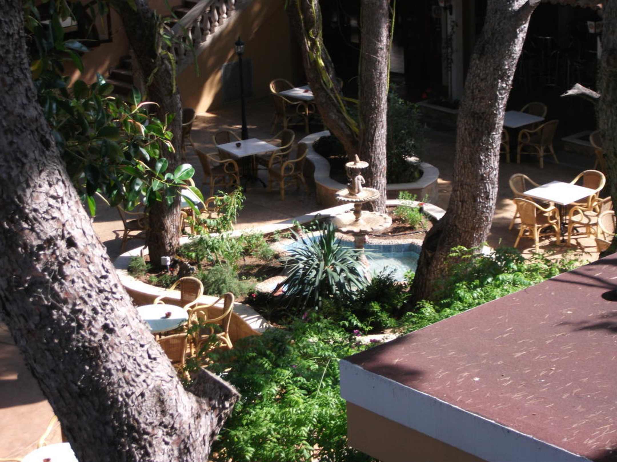 Blick vom Pool runter in den Innenhof