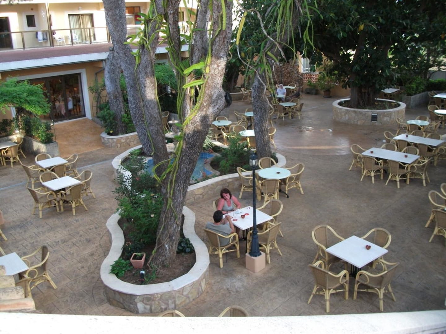 Blick vom Pool runter in den Innenhof