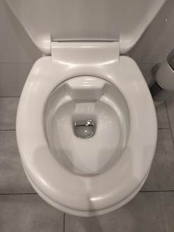 ZimmerWeil die Klobrille zu klein und nicht passend ist, sitzt man mit seinem Hintern auf dem Pozelanteil der Spüleinleitung.