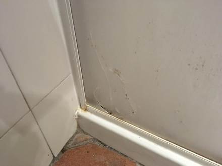 Kaputte und versiffte Dusche.