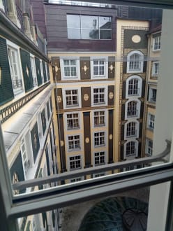 Blick vom flurfenster zum innenhof.