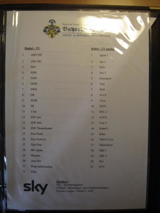 Liste der auf den Zimmern empfangbaren Fernsehprogramme