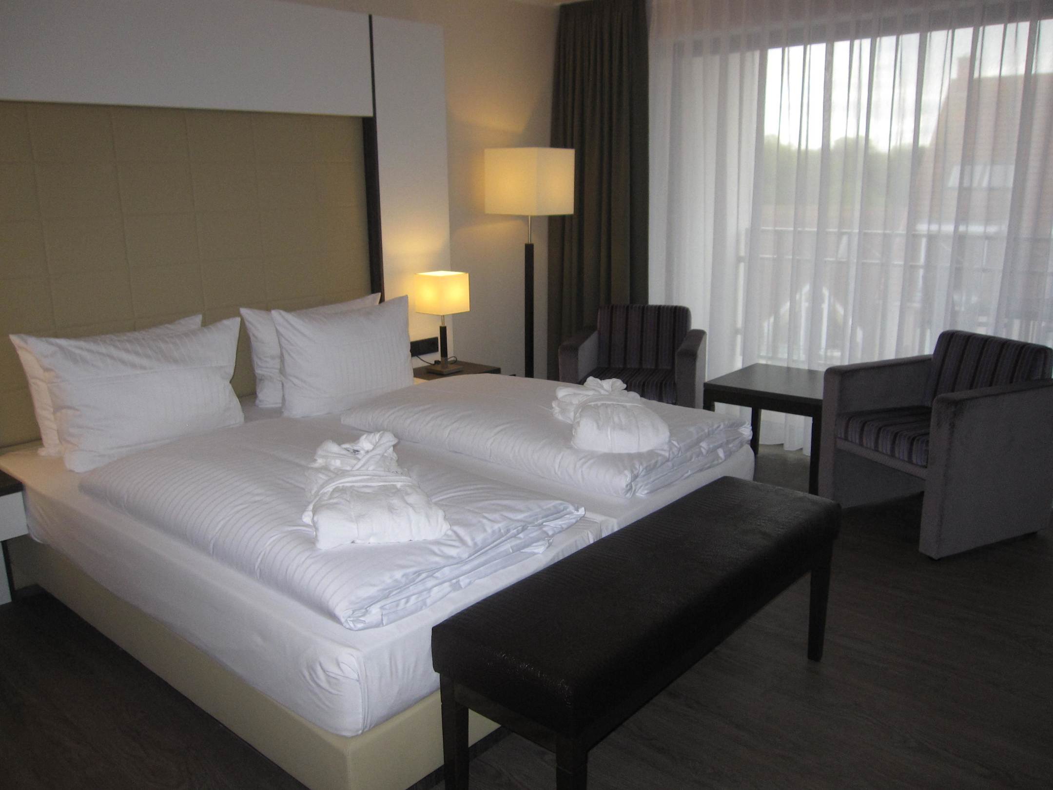 Bett mit Sitzgelegenheit im Hintergrund