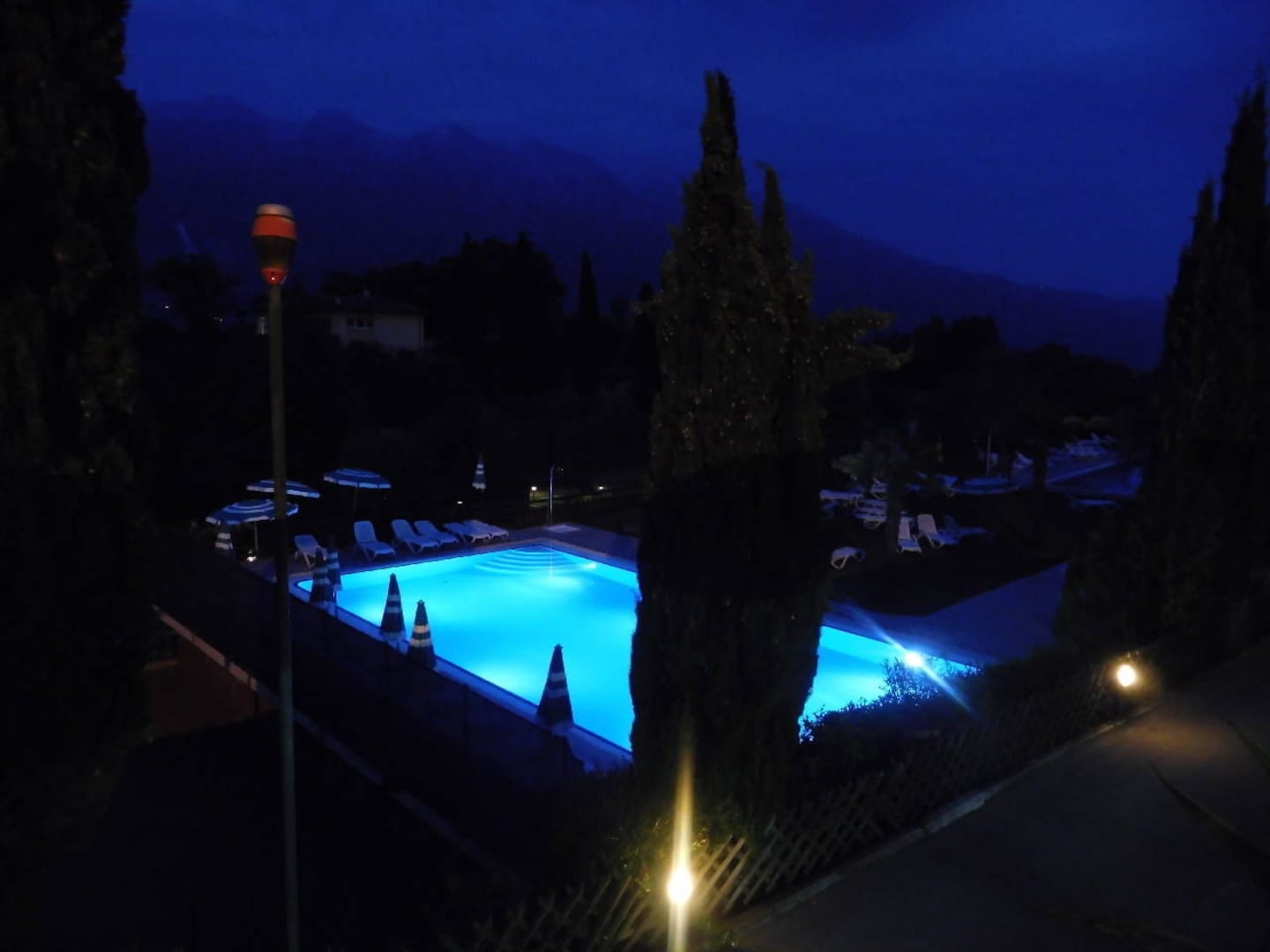 Blick auf den Pool bei Nacht