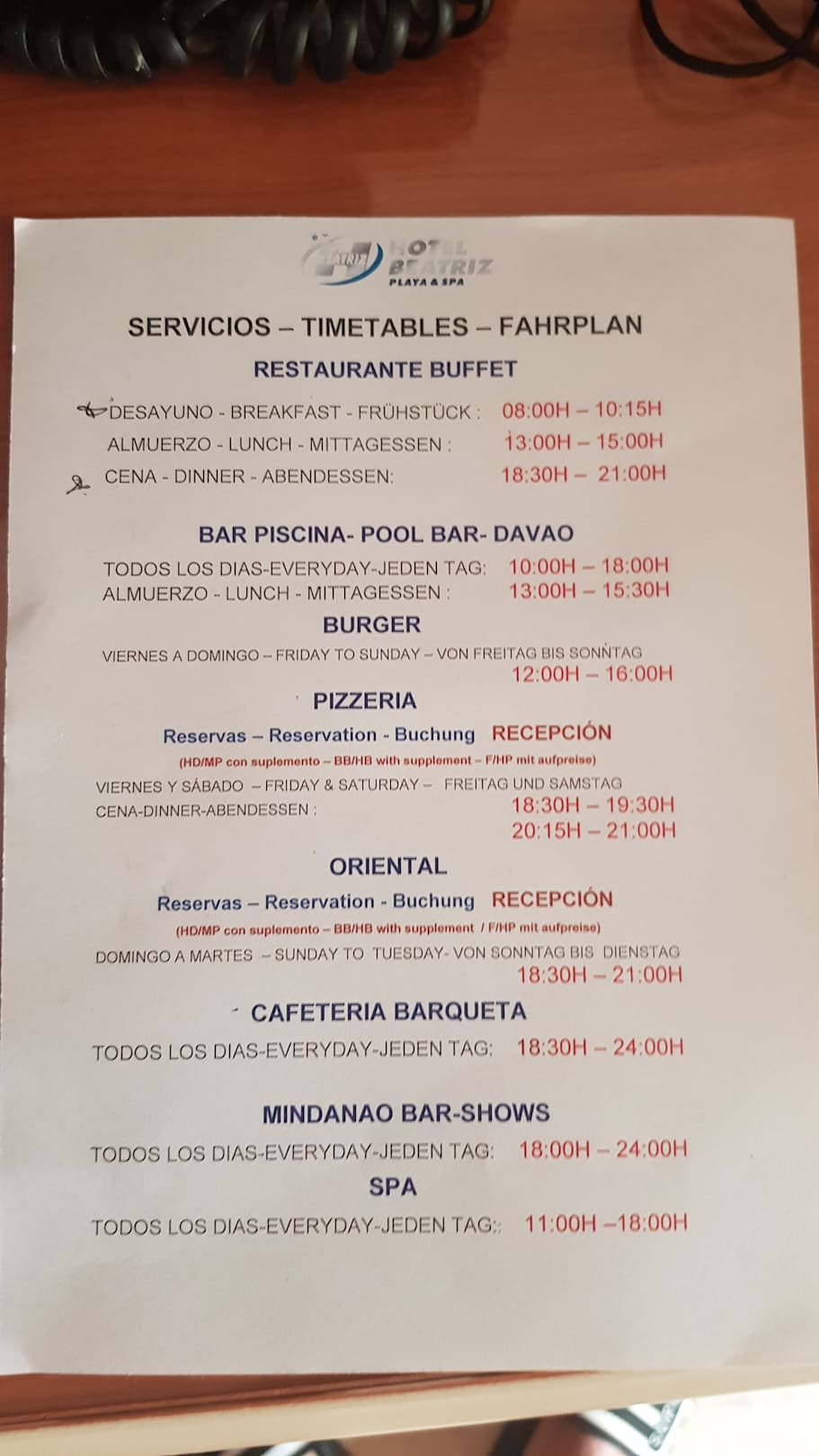 Timetable
