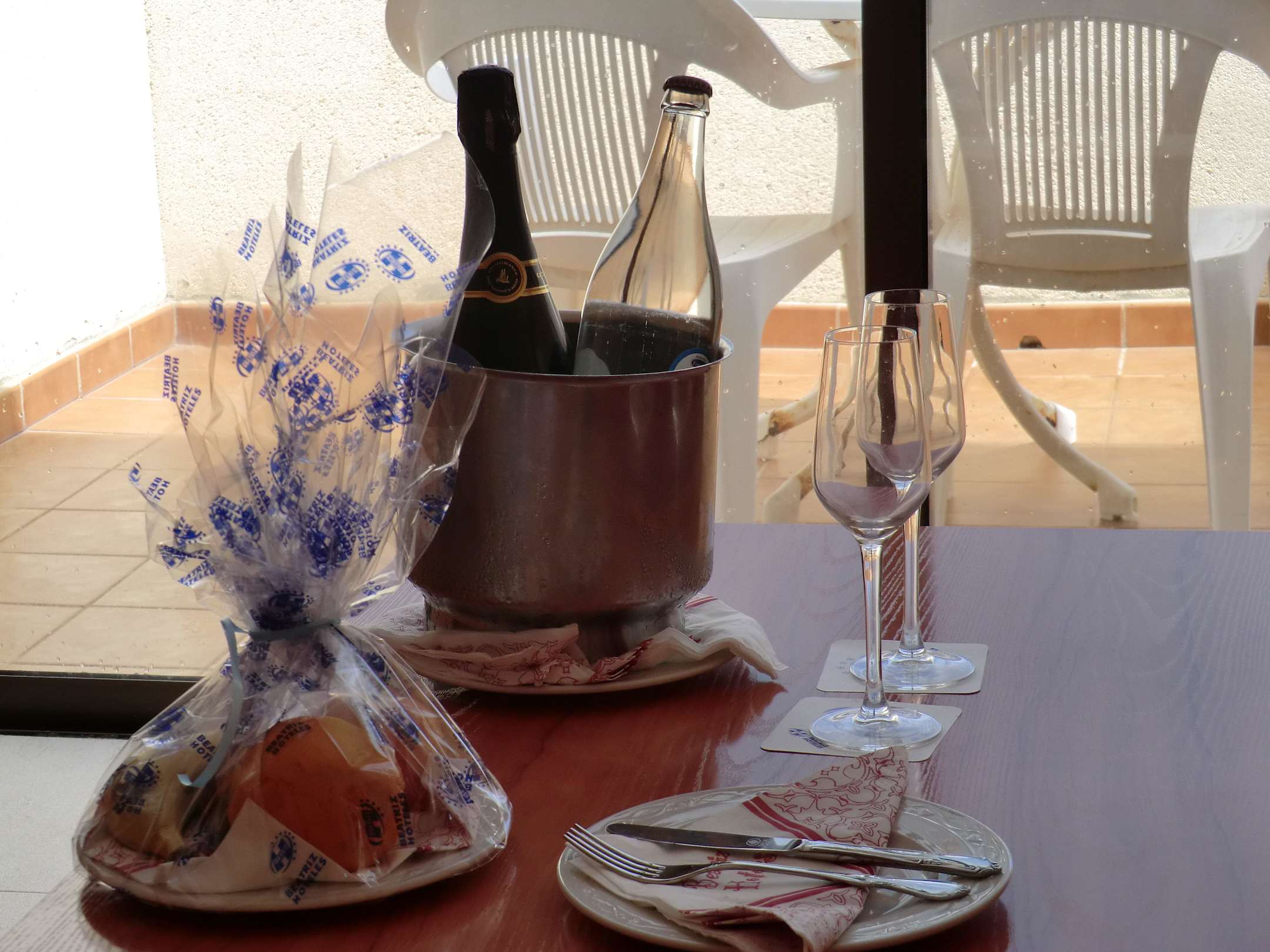 Cava, Wasser und Obst zur Begrüßung