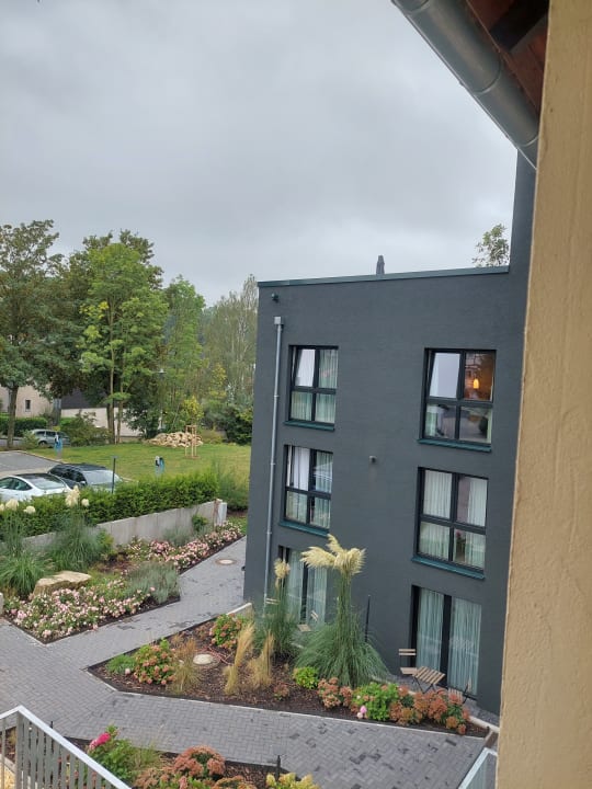 Sicht vom Altbau auf den Neubau des Hotels