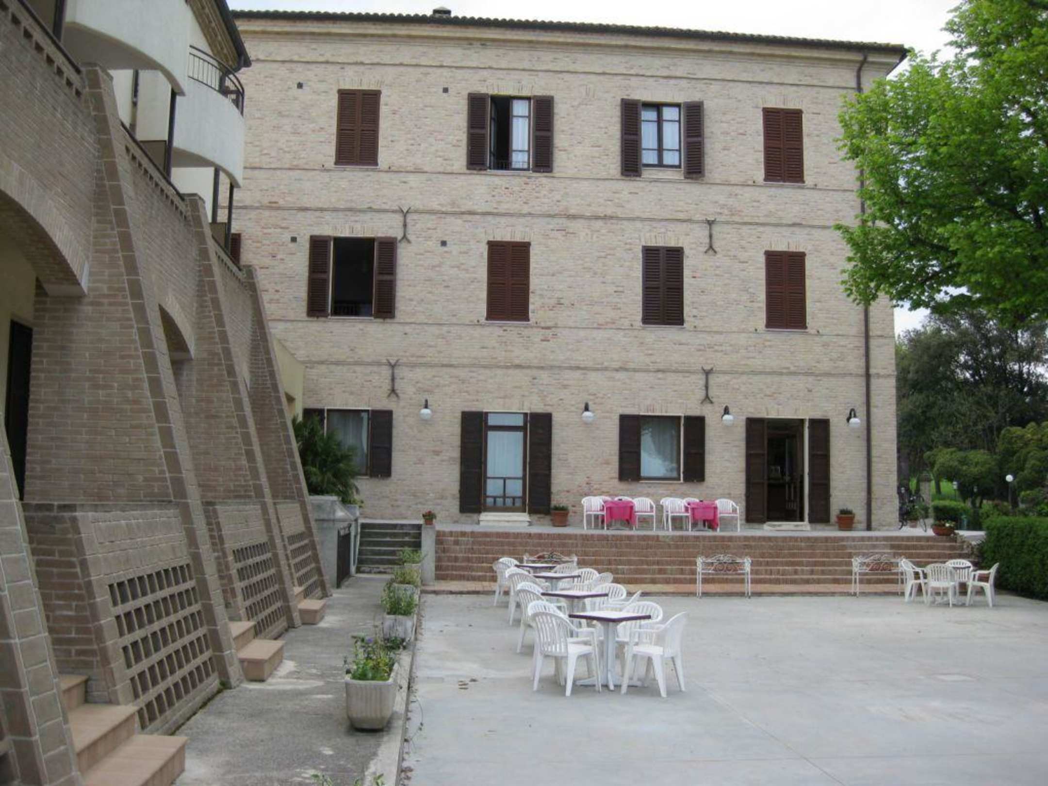 Blick von der Terrasse (Neubau) zum Haupthaus