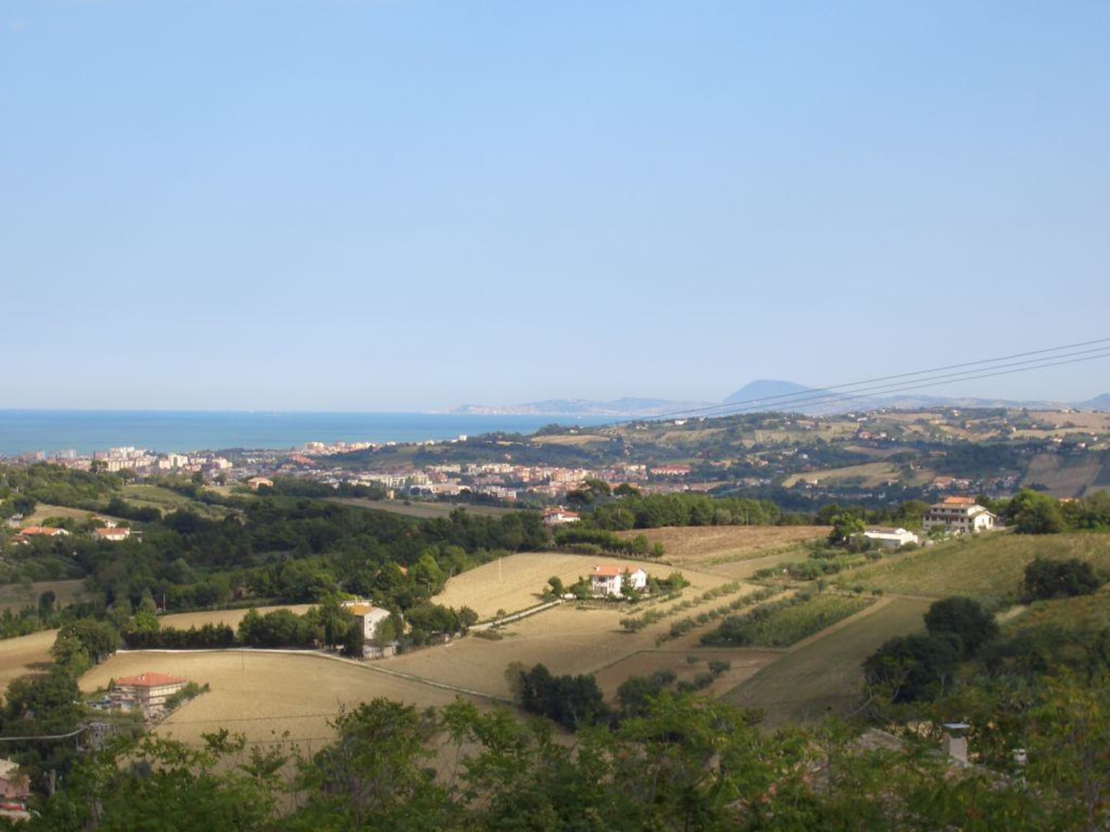 Das Bild wurde auf der seitlichen Terrasse des Bel Sit aufgenommen und zeigt den Blick Richtung Ancona/Monte Conero die Adriaküste entlang.
