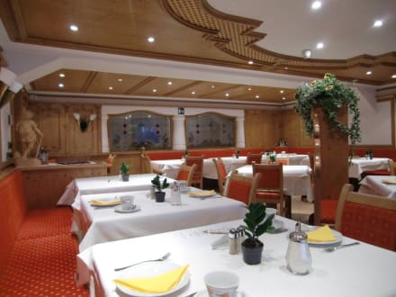 Speisesaal im BelavalHier werden sowohl das reichhaltige Frühstück als auch das abendliche 5-Gänge-Menü serviert.