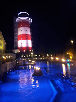 Leuchtturm hinter dem Haus