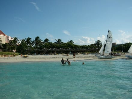 Kuba - Varadero - Iberostar Bella Costa - StrandKuba - Varadero - Iberostar Bella Costa - Blick vom Meer zum Strand rechts vom Strandrestaurant