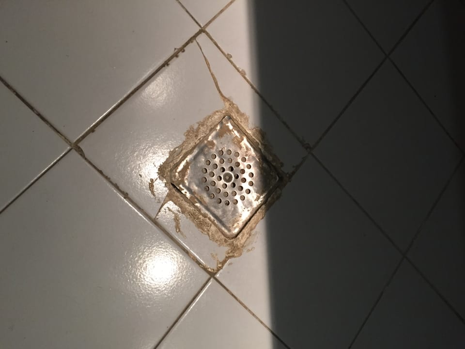 hier konnte man sich schön die Füße aufschneiden im Bad vorm Waschbecken