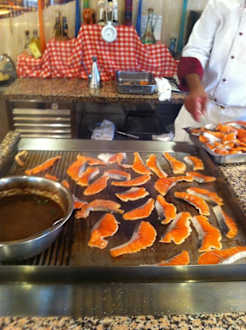 Hier seht ihr die Zubereitung der frischen Lachsfilets.