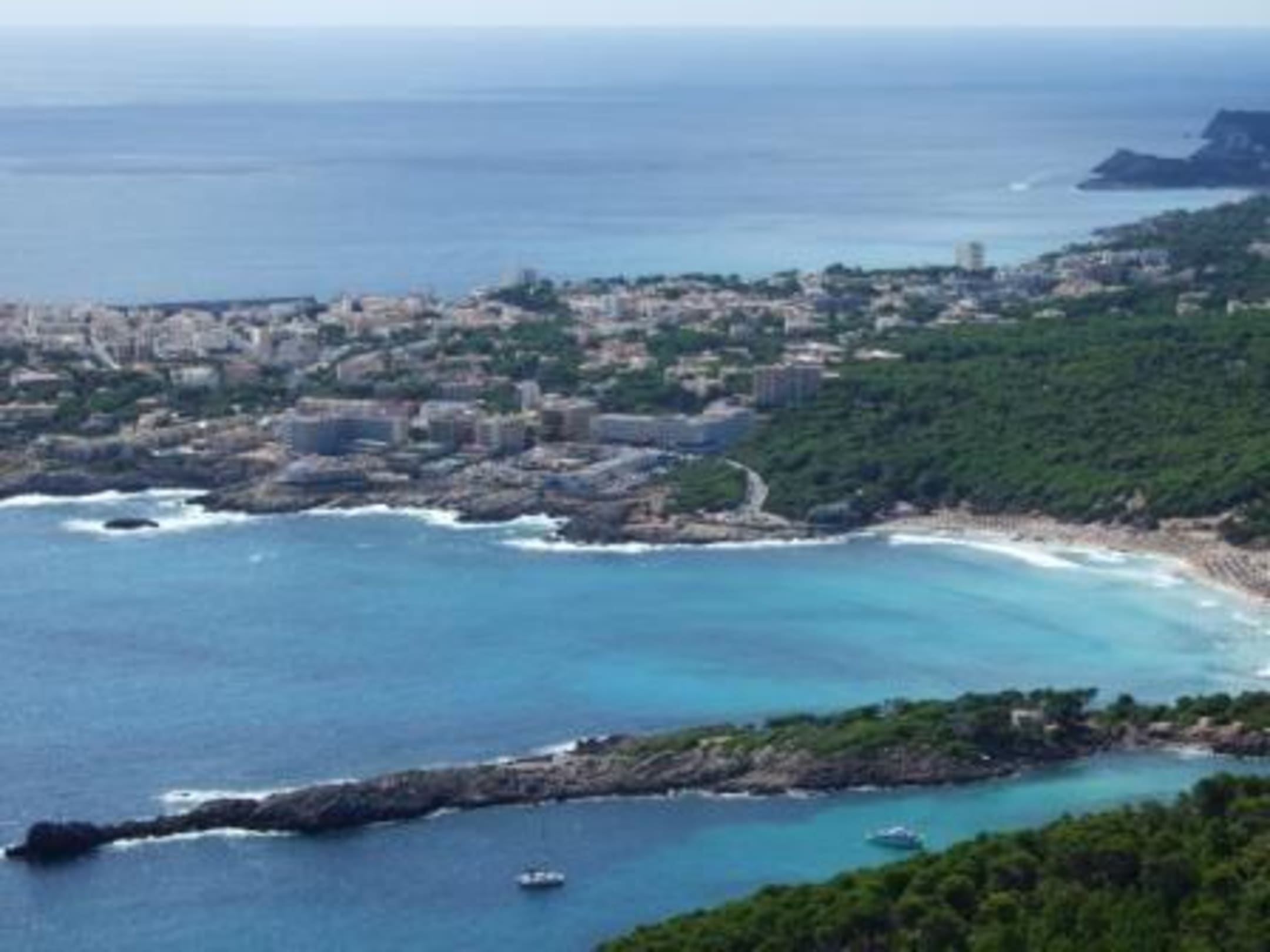 Hotel:Bella Playa Ort: Cala Ratjada Region: Mallorca Land: Spanien Das Hotel befindet sich ca. in der Bildmitte, zu sehen ist die naheliegende Bucht Cala Agulla