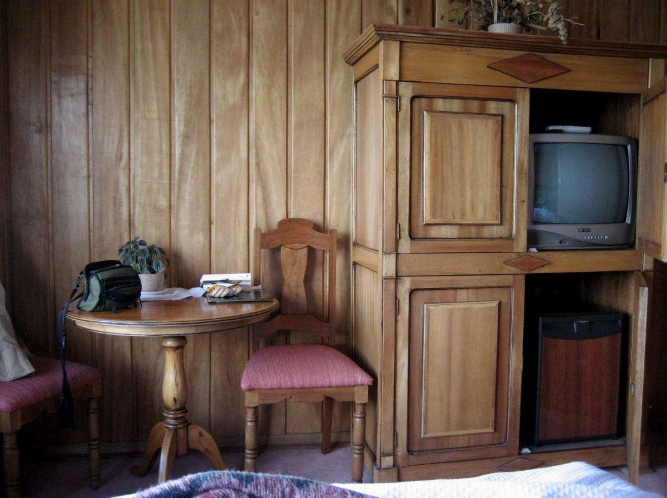TV und Kühlschrank sind im Schrank versteckt