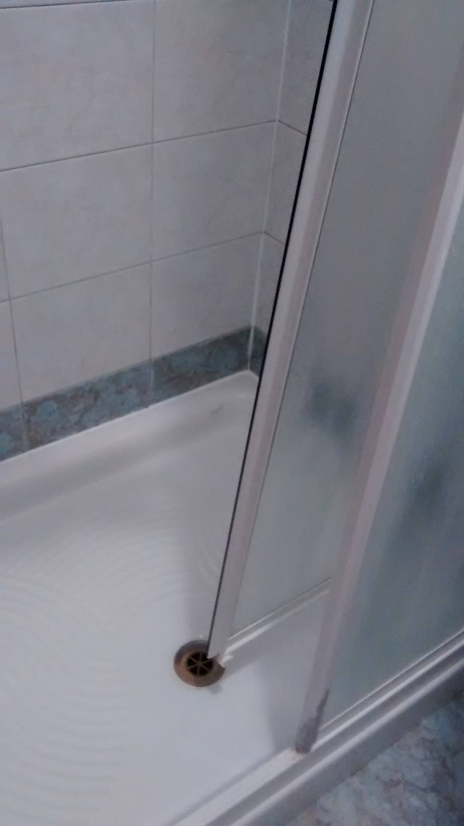 die Türen der Duschkabine liefen nur oben in der Schiene