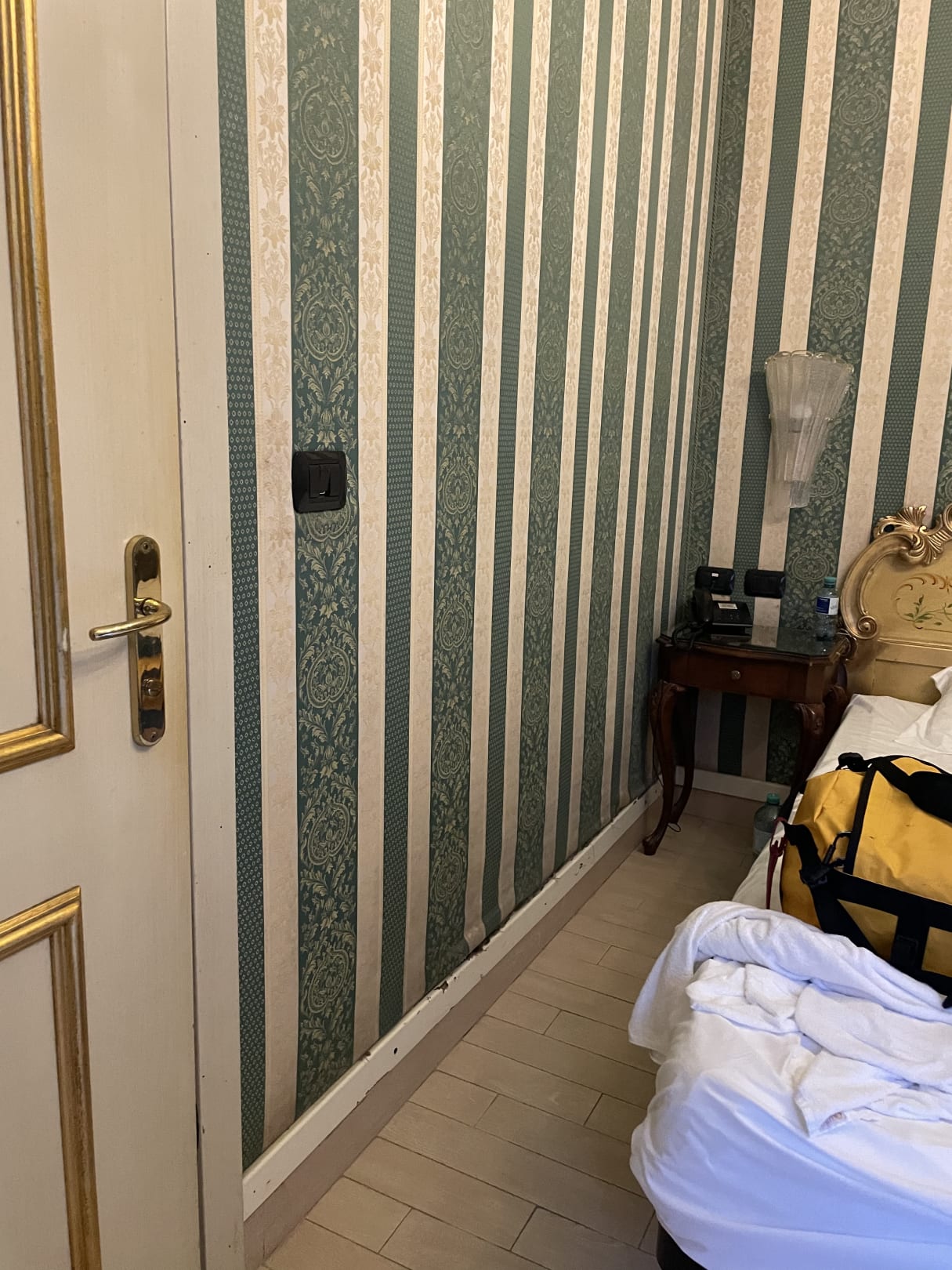 Alte Bespannung der Wand-sehr muffig und stinkt und ist dreckig und eklig einfach nur.